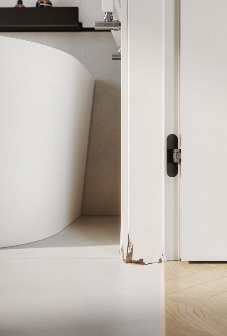 Źle zaprojektowane wnętrze w małej łazience? Niefortunny odpływ liniowy pod prysznicem otwartym na drzwi łazienkowe? Z ościeżnicą HYDRO PROTECT ™ możesz czuć się spokojnie – jest w 100% odporna na wilgoć, nawet przy dłuższej ekspozycji na wodę.