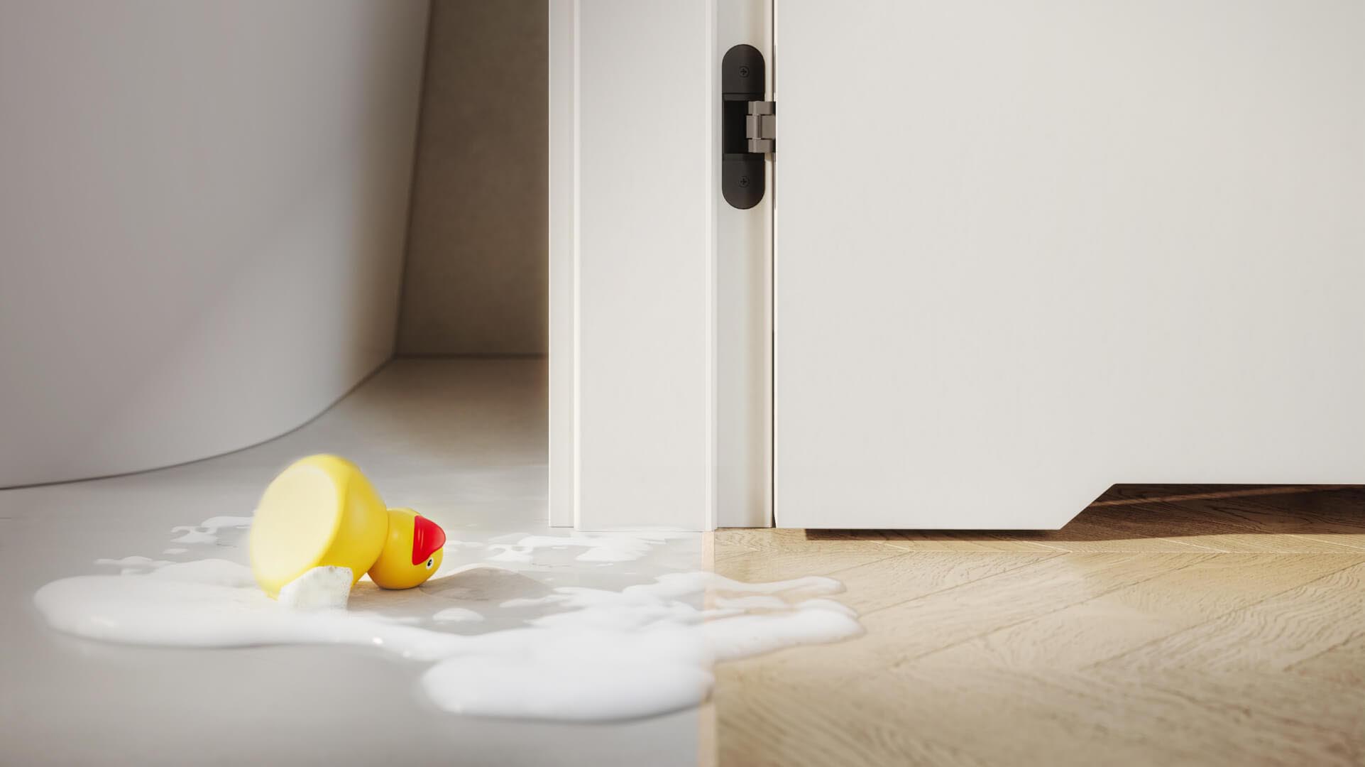 Kiedy zabawa w łazience kończy się powodzią – nic nie szkodzi, jeżeli masz HYDRO PROTECT ™, ościeżnicę do drzwi łazienkowych PORTA, do zadań specjalnych.