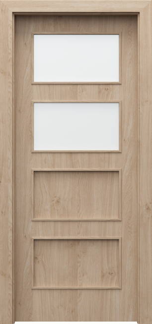 PORTA FIT G.5 – to model ozdobiony przeszkleniami w formie pięciu prostokątów, które zostały rozlokowane na całej długości skrzydła.