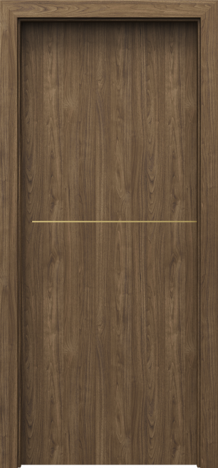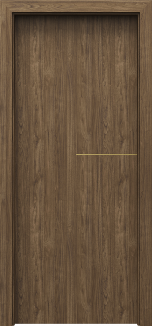 Wśród chętnie wybieranych modeli drzwi z kolekcji PORTA LINE znajduje się skrzydło H.1. Są to klasyczne pełne skrzydła drzwiowe ze zdobieniem w postaci jednej pionowej intarsji, przebiegającej mniej więcej na wysokość ¾ skrzydła, wizualnie dzieląc je na pół. Kolor intarsji warto dopasować do odcienia klamki i akcesoriów drzwiowych. Aby uzyskać spójny efekt do wyboru mamy trzy kolory zdobień – srebrny, złoty oraz czarny. Szczególnie ciekawie prezentuje się model PORTA LINE H.1. w zestawieniu z okleiną w kolorze Beton Ciemny oraz srebrnymi intarsjami i dodatkami. Wybierając ościeżnicę w tym samym kolorze uzyskamy spójny wygląd drzwi, które świetnie wpiszą się w styl minimalistyczny, loftowy oraz wszelkie nowoczesne aranżacje.