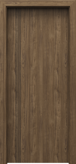 Dużą popularnością cieszy się także model PORTA LINE B.1, wyróżniający się trzema intarsjami ułożonymi w pozycji wertykalnej, które przebiegają w bezpośrednim sąsiedztwie klamki oraz zamka.