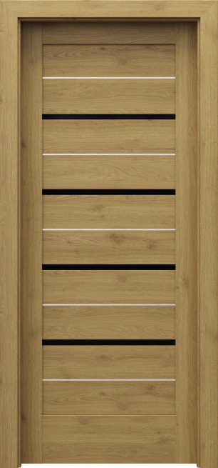 Drzwi z kolekcji PORTE VERTE HOME grupa G to skrzydła z delikatnym przeszkleniem, które pozwalają optycznie powiększyć pomieszczenia z zachowaniem prywatności. Matowa szyba, która przepuszczając światło, rozmazuje sylwetki postaci za nią ukrytych. Drzwi z tej kolekcji posiadają 4 poziome szyby. Dodatkowo w różnych modelach zamiast szyby można zamówić intarsje w kolorze srebrnym lub listwy dekoracyjne w okleinie drewnopodobnej lub okleinie aluminium szczotkowane.