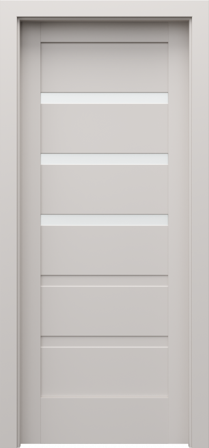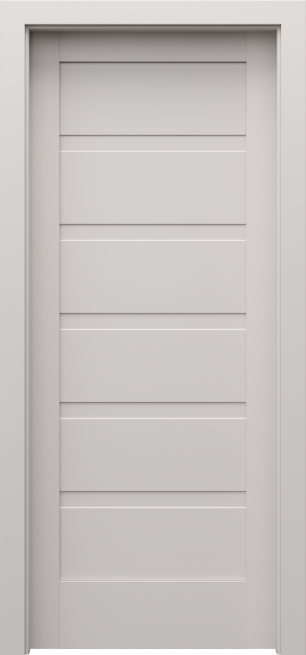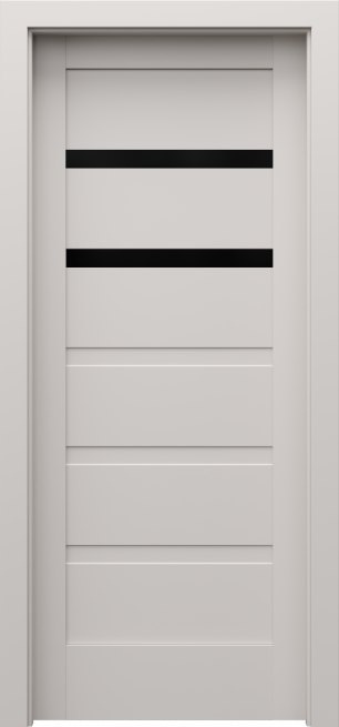 Kolekcja PORTA VERTE HOME grupa H to drzwi ramiakowe z 5 płycinami lub dyskretnymi szybami hartowanymi matowymi o grubości 4 mm. Drzwi można zamówić podwójne, a także w wersji przesuwnej. Drzwi można zamówić w okleinie drewnopodobnej oraz w kolorze białym i szarym. W skrzydłach w białej okleinie zamiast szyby można zamówić intarsje w kolorze srebrnym lub listwy dekoracyjne w okleinie drewnopodobnej lub okleinie aluminium szczotkowane (opcja za dopłatą). Ta kolekcja sprawdzi się w jasnych i nowoczesnych wnętrzach.