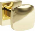 CALDO to gałka kwadratowa dostępna z rozetą zwykłą, patentową i z blokadą WC. Gałka jest dostępna w kolorach: złoty PVD, czarny, srebrny