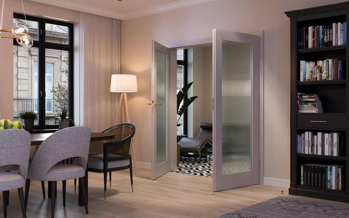 Drzwi przeszklone, w wariancie z szybą pełną lub dzieloną na mniejsze, prostokątne wstawki osadzone w ramie skrzydła, doświetlą małe i ciemne pomieszczenia nadając jednocześnie drzwiom optycznej lekkości.