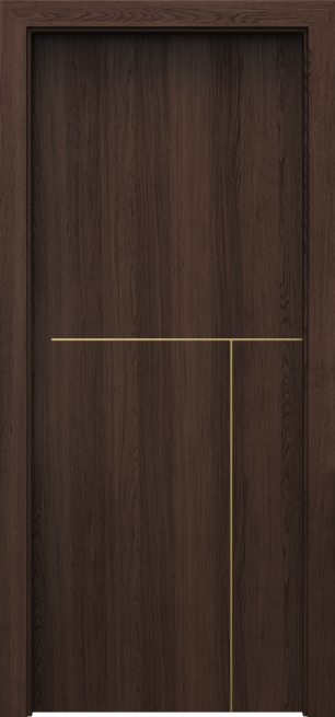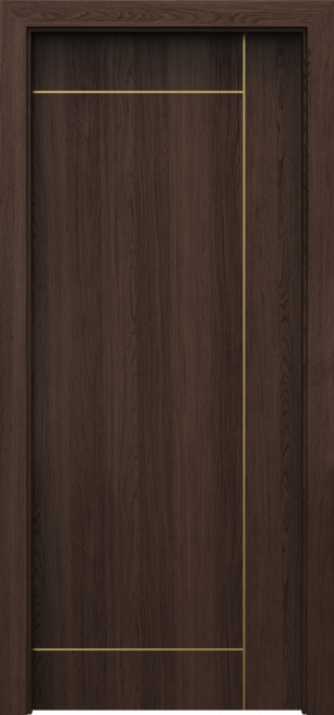 Wśród chętnie wybieranych modeli drzwi z kolekcji PORTA LINE znajduje się skrzydło H.1. Są to klasyczne pełne skrzydła drzwiowe ze zdobieniem w postaci jednej pionowej intarsji, przebiegającej mniej więcej na wysokość ¾ skrzydła, wizualnie dzieląc je na pół. Kolor intarsji warto dopasować do odcienia klamki i akcesoriów drzwiowych. Aby uzyskać spójny efekt do wyboru mamy trzy kolory zdobień – srebrny, złoty oraz czarny. Szczególnie ciekawie prezentuje się model PORTA LINE H.1. w zestawieniu z okleiną w kolorze Beton Ciemny oraz srebrnymi intarsjami i dodatkami. Wybierając ościeżnicę w tym samym kolorze uzyskamy spójny wygląd drzwi, które świetnie wpiszą się w styl minimalistyczny, loftowy oraz wszelkie nowoczesne aranżacje.