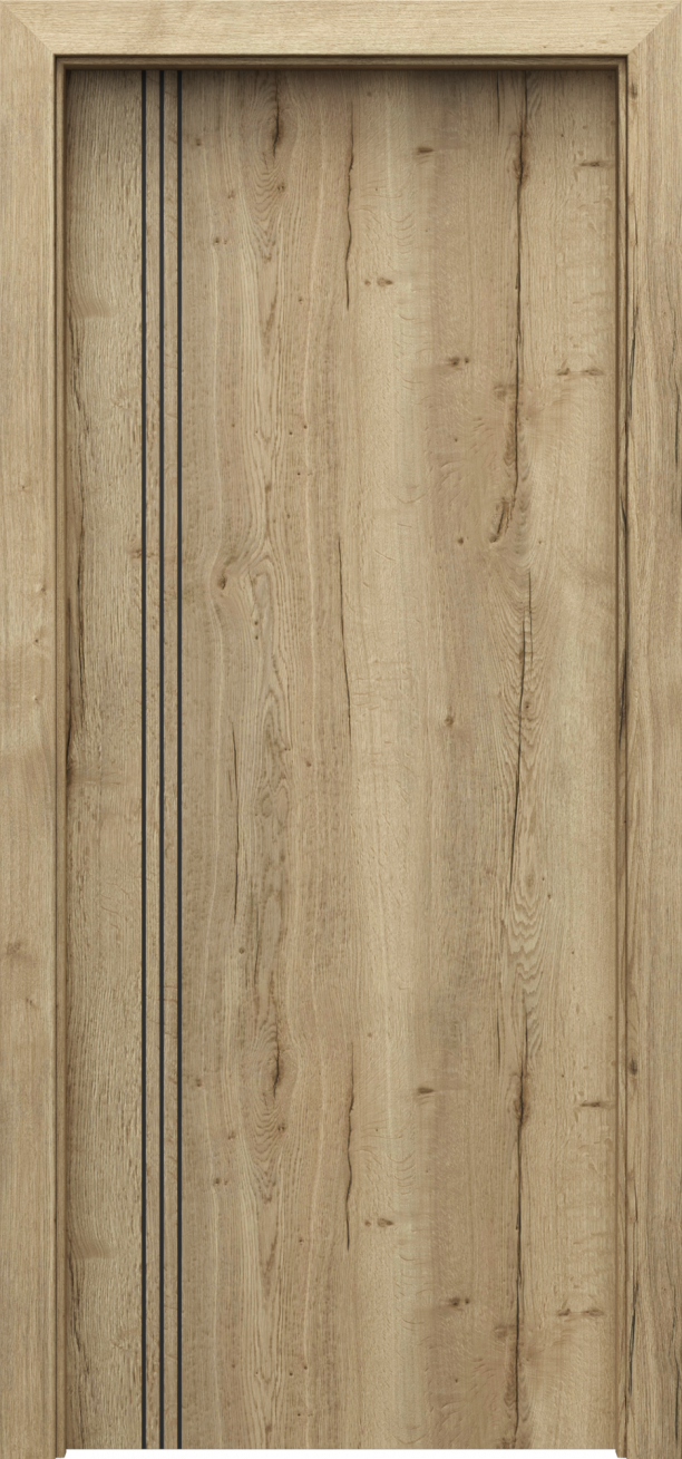 Modele pełne bez zdobień to PORTA RESIST 1.1. oraz 7.1. Oba warianty różnią się kierunkiem usłojenia, które może przebiegać w orientacji pionowej (model 1.1.) lub poziomej (PORTA LINE 7.1.). Modele z ozdobnymi intarsjami w kolorze srebrnym lub czarnym występują w modelach PORTA LINE B.1, E.1. oraz H.1. w usłojeniu okleiny zgodnym z kierunkiem przebiegu intarsji. Dostępne kolory oklein to Dąb Piaskowy, Halifax Naturalny oraz Dąb Brązowy. Wszystkie wiernie odzwierciedlają wygląd prawdziwego drewna, dzięki czemu prezentują się ciepło i przytulnie. Piękno, trwałość i uniwersalność – każda z tych cech dobrze opisuje to, jak udana jest to kolekcja.