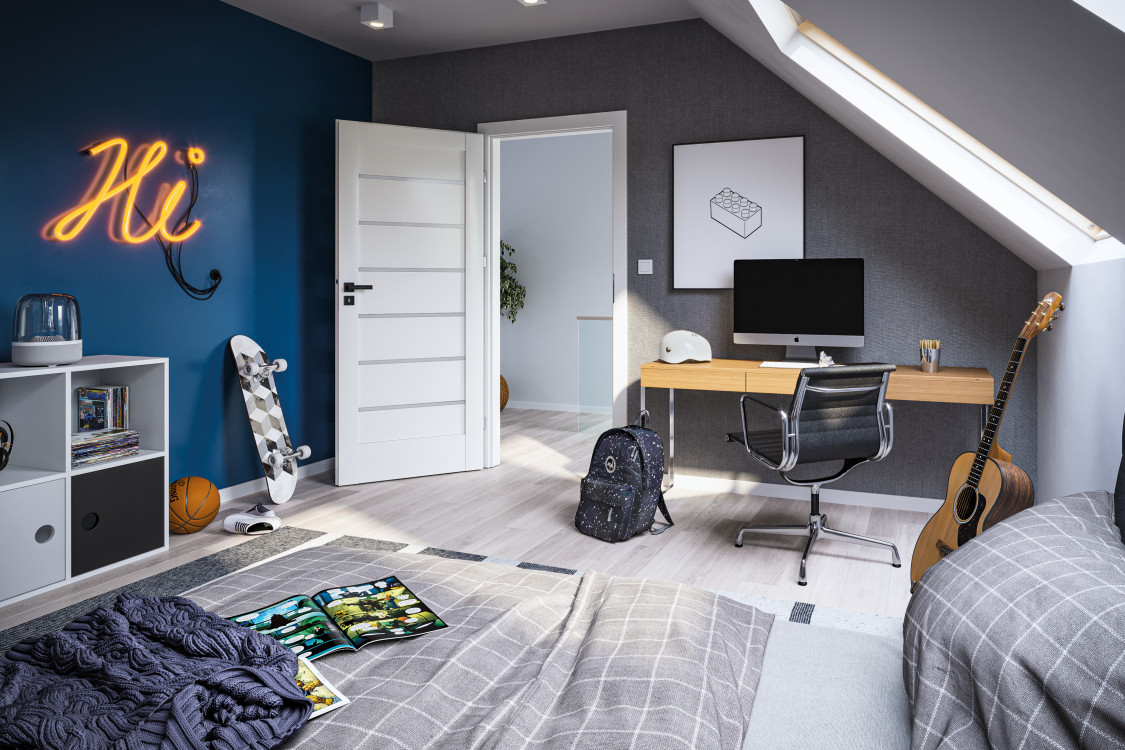 Grupa J z kolekcji PORTA VERTE HOME to drzwi ramiakowe z 6 płycinami lub dyskretnymi szybami hartowanymi matowymi o grubości 4 mm. Drzwi można zamówić podwójne, a także w wersji przesuwnej. Drzwi można zamówić w okleinie drewnopodobnej oraz w kolorze białym i szarym. W skrzydłach w białej okleinie zamiast szyby można zamówić intarsje w kolorze srebrnym lub listwy dekoracyjne w okleinie drewnopodobnej lub okleinie aluminium szczotkowane. Ta kolekcja sprawdzi się w jasnych i nowoczesnych wnętrzach.