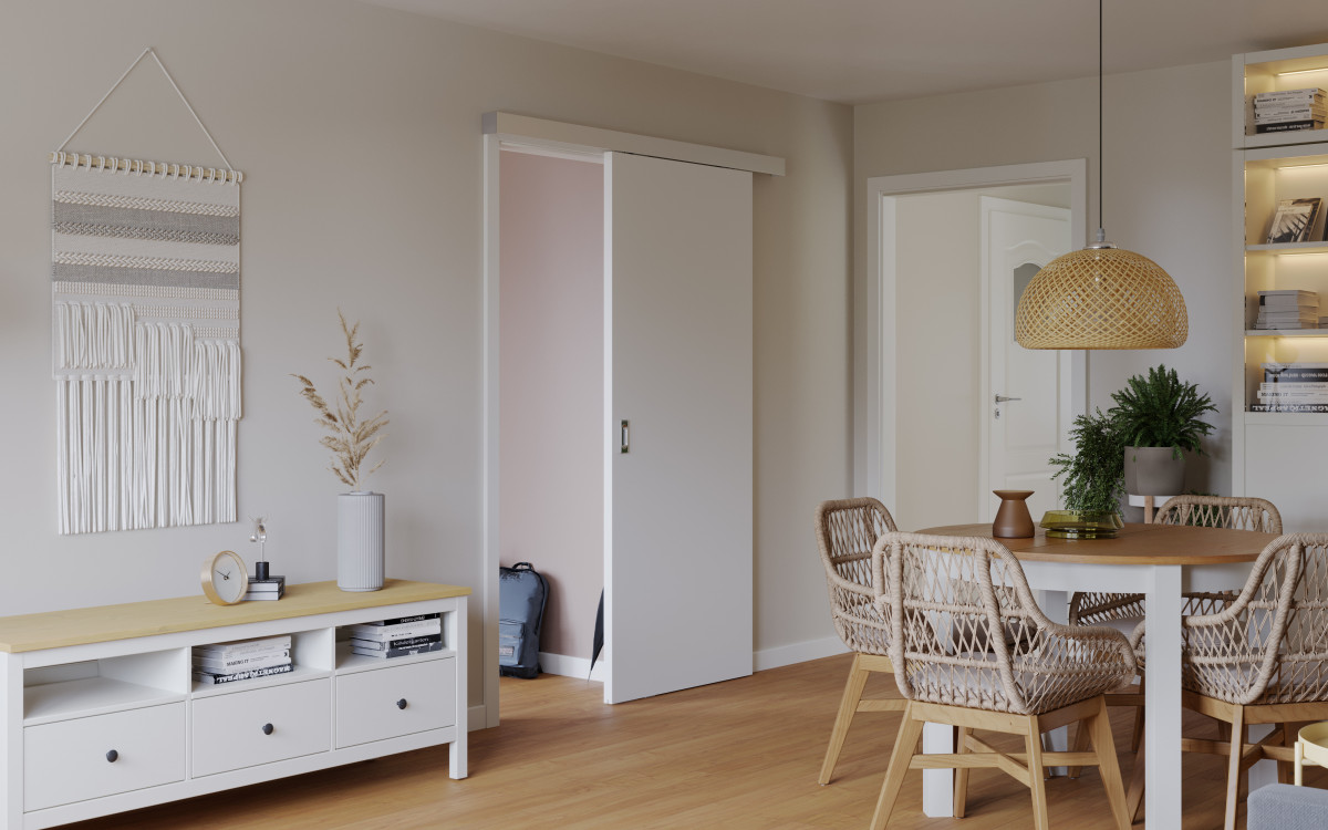 System przesuwny naścienny ALU do zastosowania z prawie każdym skrzydłem z tradycyjnych kolekcji PORTA (za wyjątkiem tych, które nie mogą zostać wykonane w wersji przesuwnej).