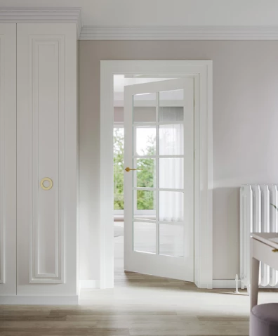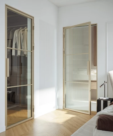 Linię wzorniczą wyróżniają przeszklenia bez szprosów oraz spokojne, klasyczne odcienie drewna i lakierów. Dostępna również w eleganckim wydaniu Glamour, idealnie nadaje się do wnętrz premium.