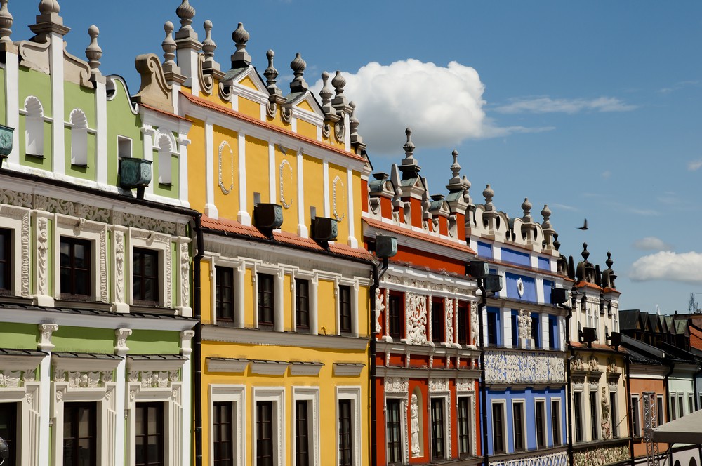 W Zamościu prawdziwą ozdobą miasta jest Rynek Wielki. W każdej z czterech pierzei rynku znajdują się barwne, bogato zdobione kamienice. Najbardziej rzucają się w oczy te, które znane są jako ormiańskie. Z budynkiem „małżeńskim” wiąże się ciekawa legenda o mężu, który miał dość swojej żony, więc oskarżył ją o czary, za co kobieta została skazana na stos. Ze względu na to, że fasada budynku została pomalowana na piękny niebieski kolor, mówi się o nim również „kamienica szafirowa”. Jak widać, nie tylko nowoczesne elewacje domu mogą zachwycać pięknymi barwami, co zresztą potwierdzają pozostałe przykłady kolorowych domów.