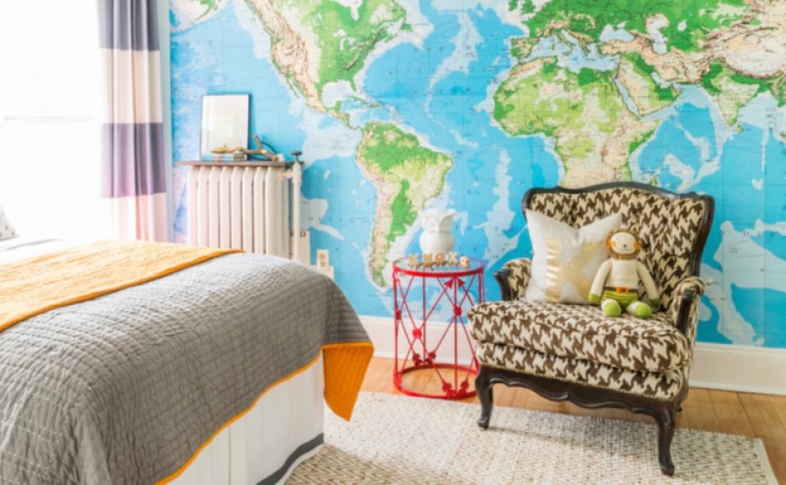 Pomysłów jest mnóstwo. Najważniejsze to dopasować mapę do wnętrza kolorystycznie i stylistycznie – na zasadzie zbieżności albo kontrastu. Przy czym druga opcja jest bardziej ryzykowna. Na co wy byście się zdecydowali?