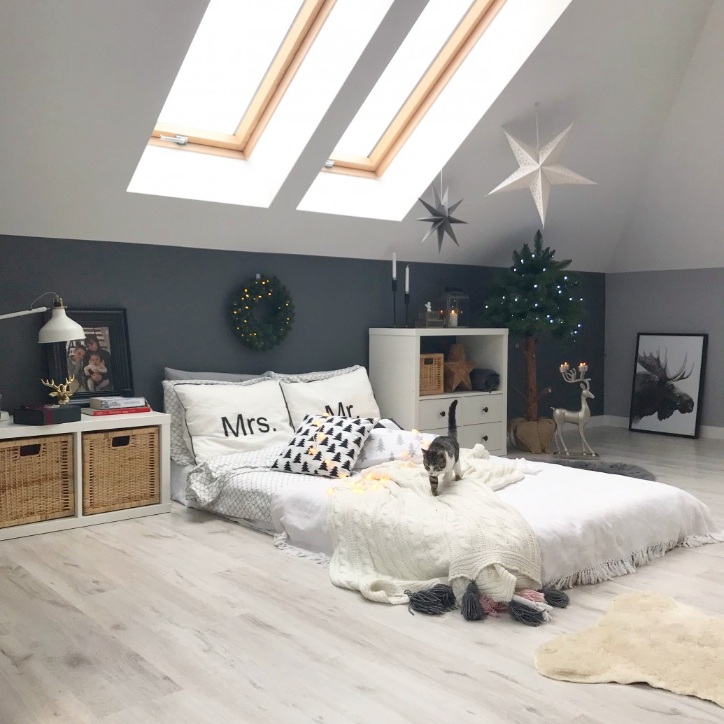 Wnętrze jest jasne i ciepłe. Dominują biele i szarości.