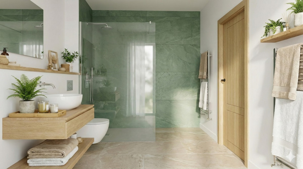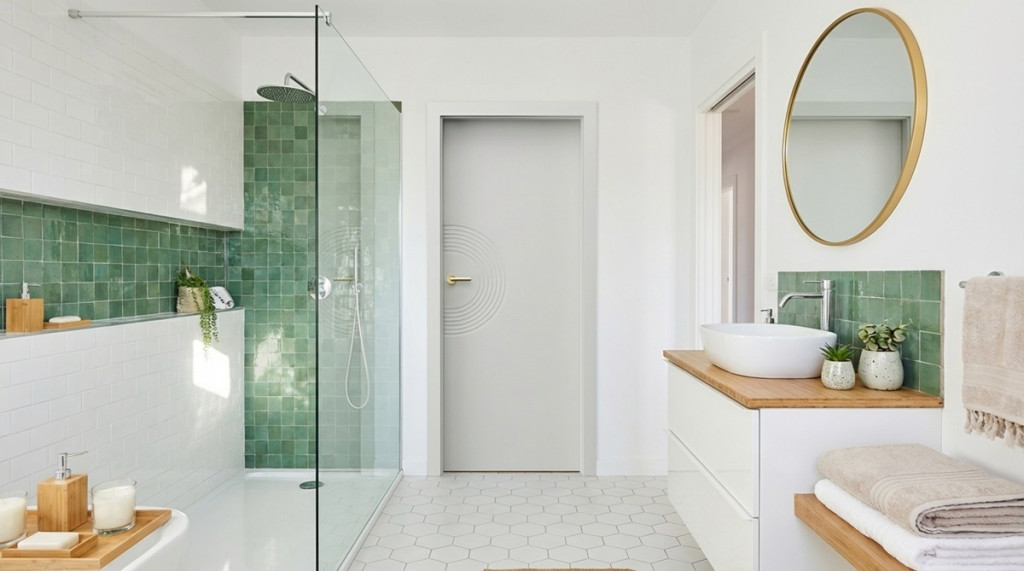 Zielona łazienka – jak ją modnie zaaranżować i dobrać drzwi łazienkowe?