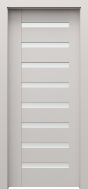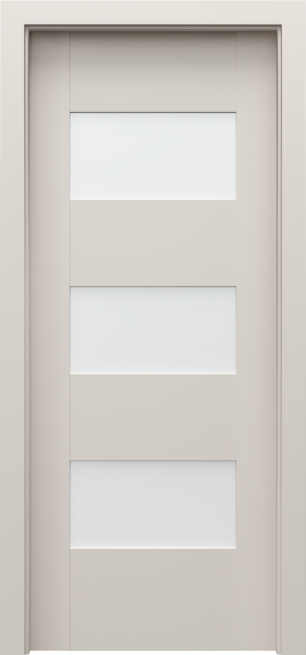 Kaszmirowe drzwi w wersji z szybami to dobry wybór szczególnie do ciemnych i małych pomieszczeń. Ich jasny kolor pokrycia oraz przeszklenia pozwalające doświetlić wnętrze ocieplą aranżację i optycznie powiększą przestrzeń. Drzwi przeszklone w tym odcieniu są dostępne między innymi w modelu PORTA GRANDE A.1 z szybą ryflowaną. Duże ozdobne szyby pozwalają zachować prywatność, a jednocześnie wpuścić światło naturalne do wnętrza pokoju. Doskonale prezentują się w klasycznych aranżacjach. W wariancie dwuskrzydłowym będą świetną ozdobą mieszkań w kamienicach czy apratamentowcach. Drzwi z tej samej kolekcji w wersji z wąskimi szybkami są dobrym wyborem między innymi do łazienki lub sypialni. Ciekawym akcentem, który doda wnętrzu charakteru są skrzydła z czarnymi szybami.