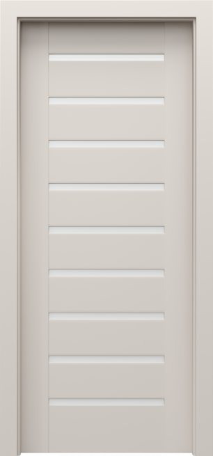 Drzwi bezprzylgowe idealnie uzupełniają nowoczesne wnętrza, te urządzone w stylu minimalistycznym, industrialnym, jak i glamour czy w stylu boho i skandynawskim. Te pokryte laminatem w kolorze kaszmirowym są dostępne w kolekcji PORTA LINE z eleganckimi intarsjami w trzech kolorach do wyboru. Modele z kolekcji PORTA LOFT z czarną ościeżnicą będą dobrym wyborem do aranżacji w stylu loftowym. Do wyboru są zarówno skrzydła pełne jak i przeszklone. Pokrycie trwałą okleiną laminowaną CPL w kaszmirowym kolorze w połączeniu z czarną wąską szybką oraz czarną ościeżnicą to odważne zestawienie, które podkreśli industrialny charakter wnętrza.