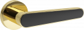 SUPRO to klamka z okrągłą rozetą w kolorze srebrnym lub złotym PVD i czarnym insertem z przodu klamki.